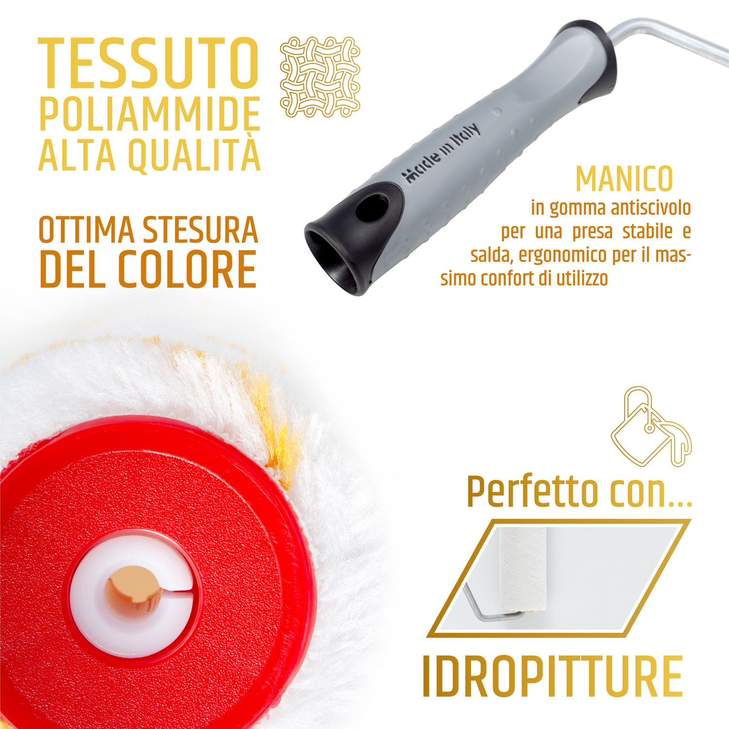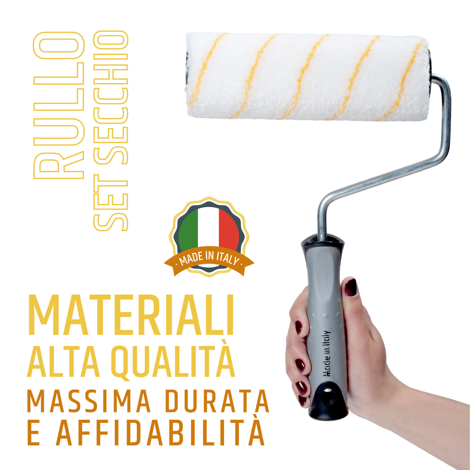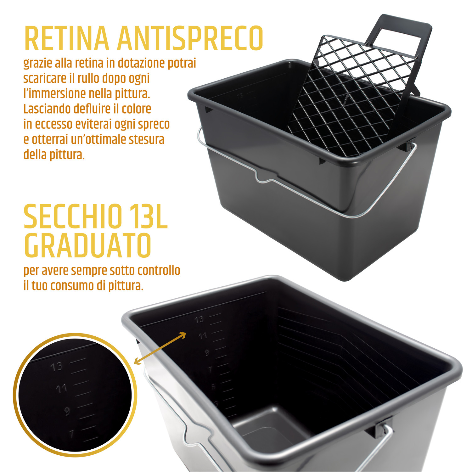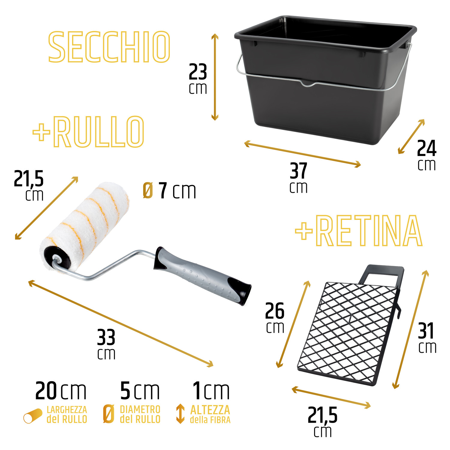 KIT RULLO CON BACINELLA E RETINA PER SCOLARE LA PITTURA SET PITTURA IDROPITTURA PARETI LISCE E POCO RUVIDE SECCHIO DA 14 L DIMENSIONI 20 CM