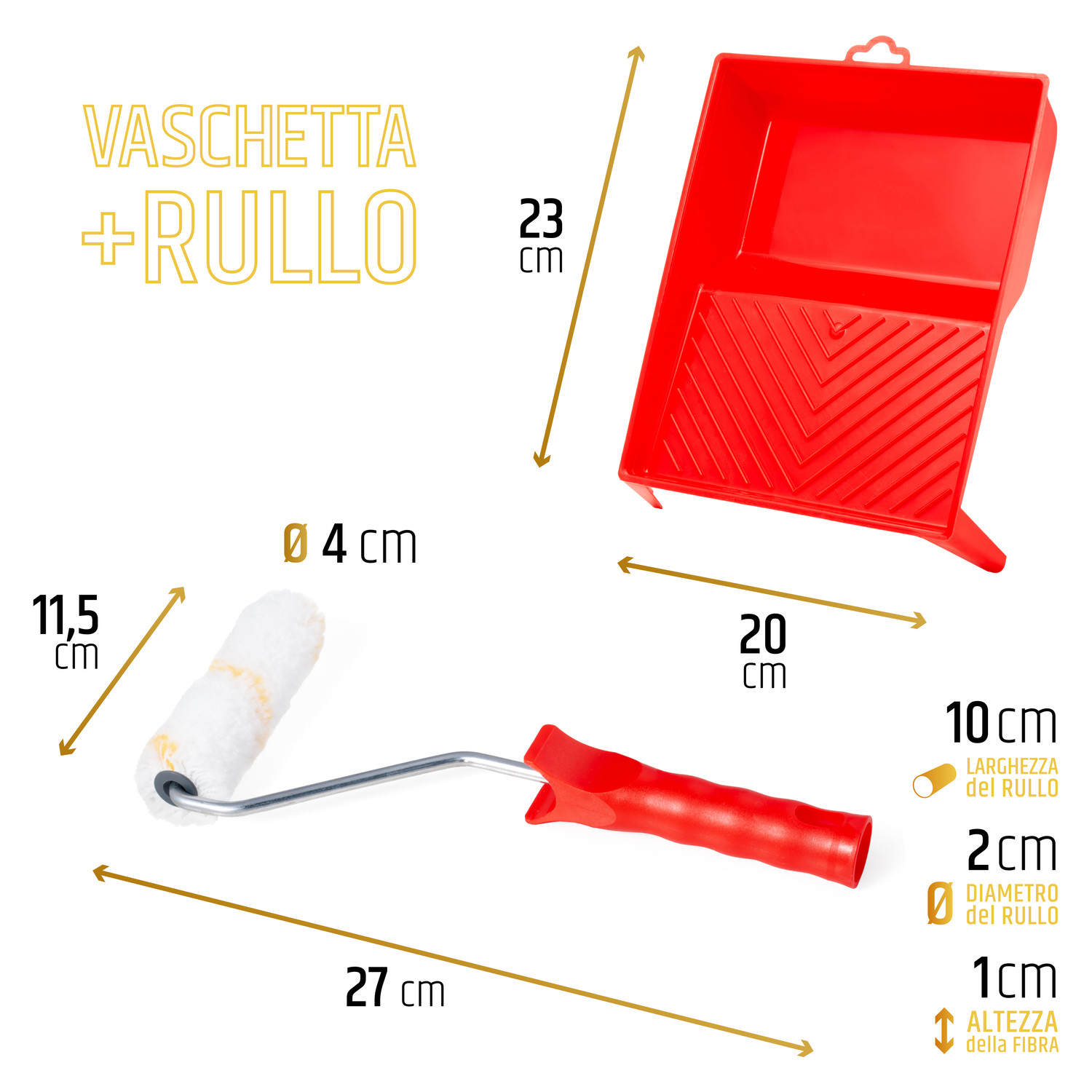 KIT RULLO E VASCHETTA PER VERNICIARE SET PITTURA RULLO PER IDROPITTURE E PITTURE DA INTERNI RESISTENTE A SOLVENTI DIMENSIONI 10 CM ⌀ 15 MM