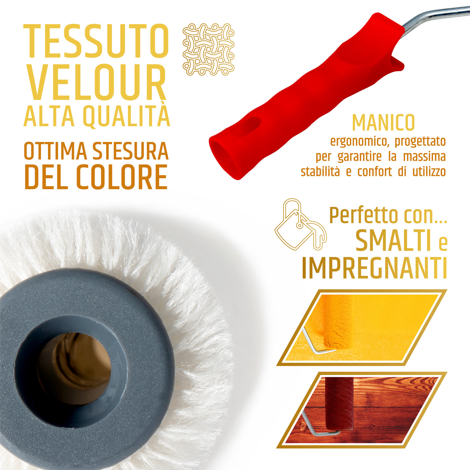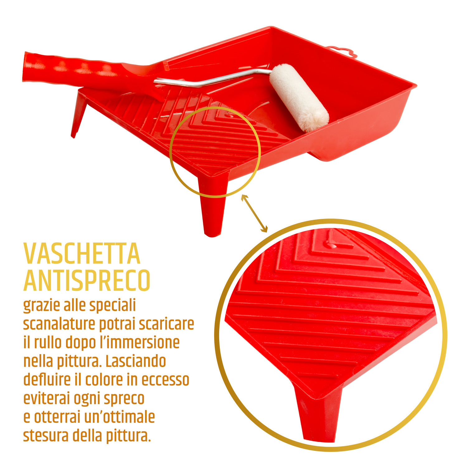 KIT RULLO E VASCHETTA PER VERNICIARE SET PITTURA RULLO PER SMALTI RESISTENTE A SOLVENTI DIMENSIONI 10 CM ⌀ 15 MM