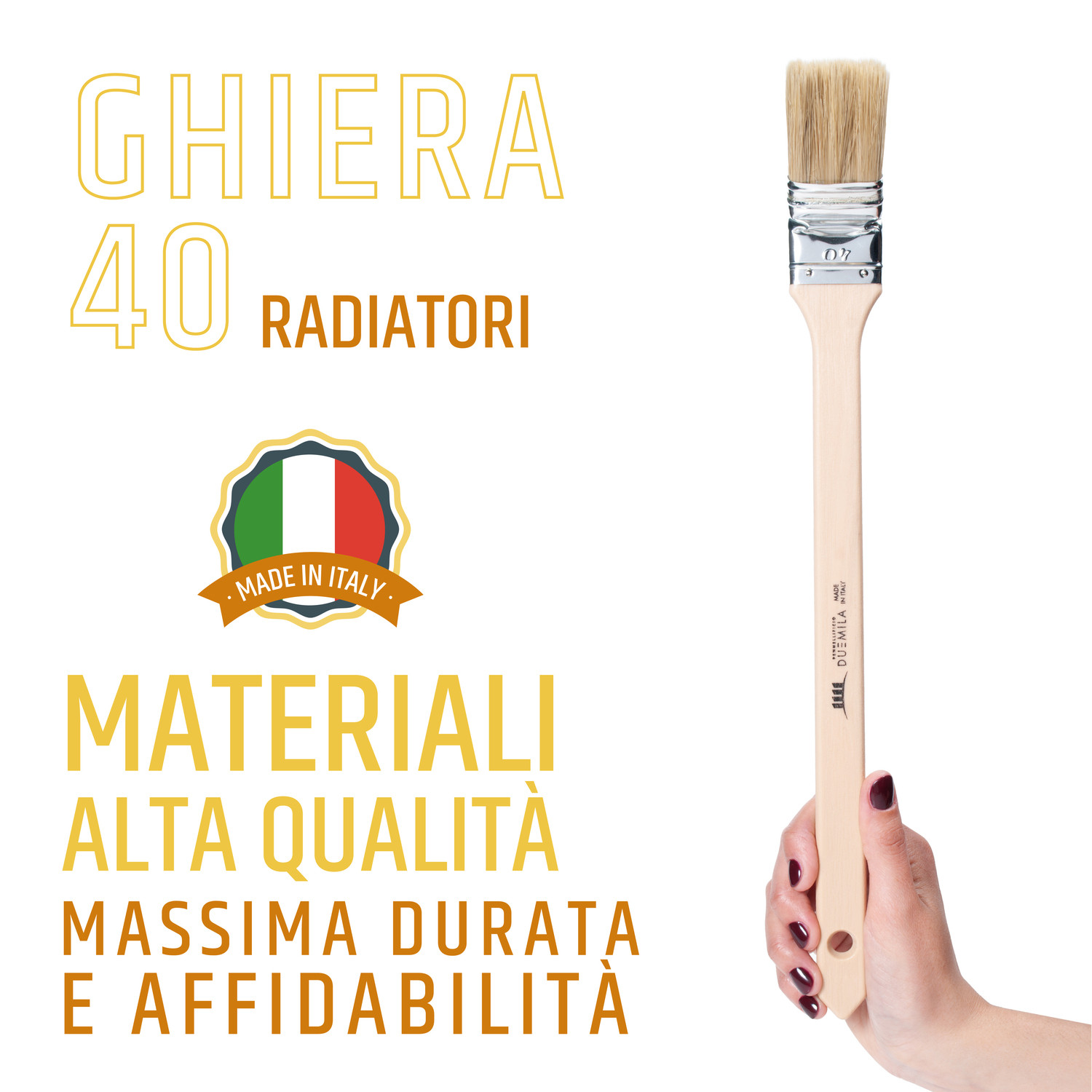PENNELLO PER RADIATORI CON MANICO IN PLASTICA PER VERNICIATURE DI RADIATORI PROFILATURE E ANGOLI LARGHEZZA GHIERA 40 MM