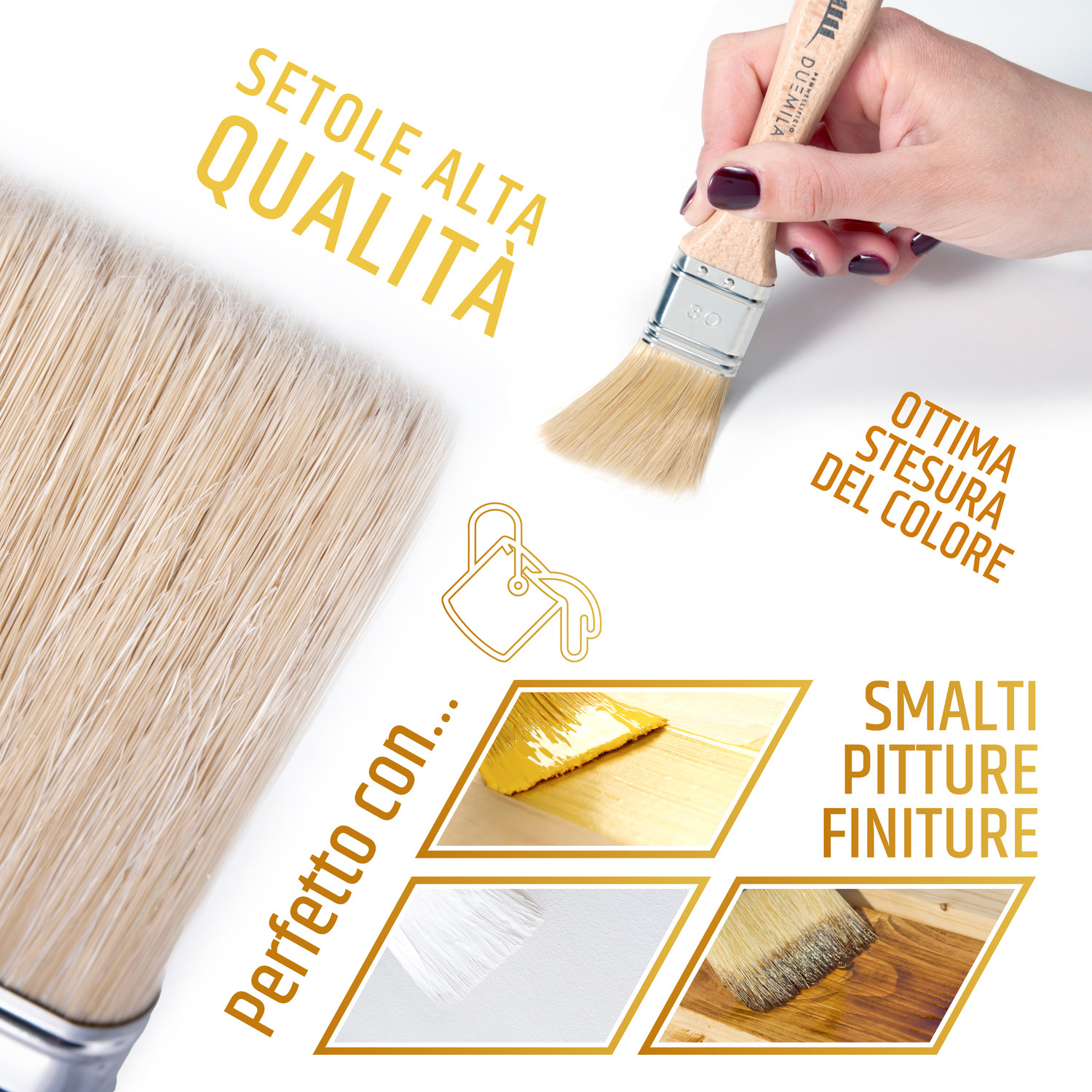 PENNELLO PITTURA CON MANICO IN LEGNO VERNICIATO PENNELLESSA UNIVERSALE PER SMALTI E VERNICI MURI LEGNO FERRO LARGHEZZA GHIERA 30 MM