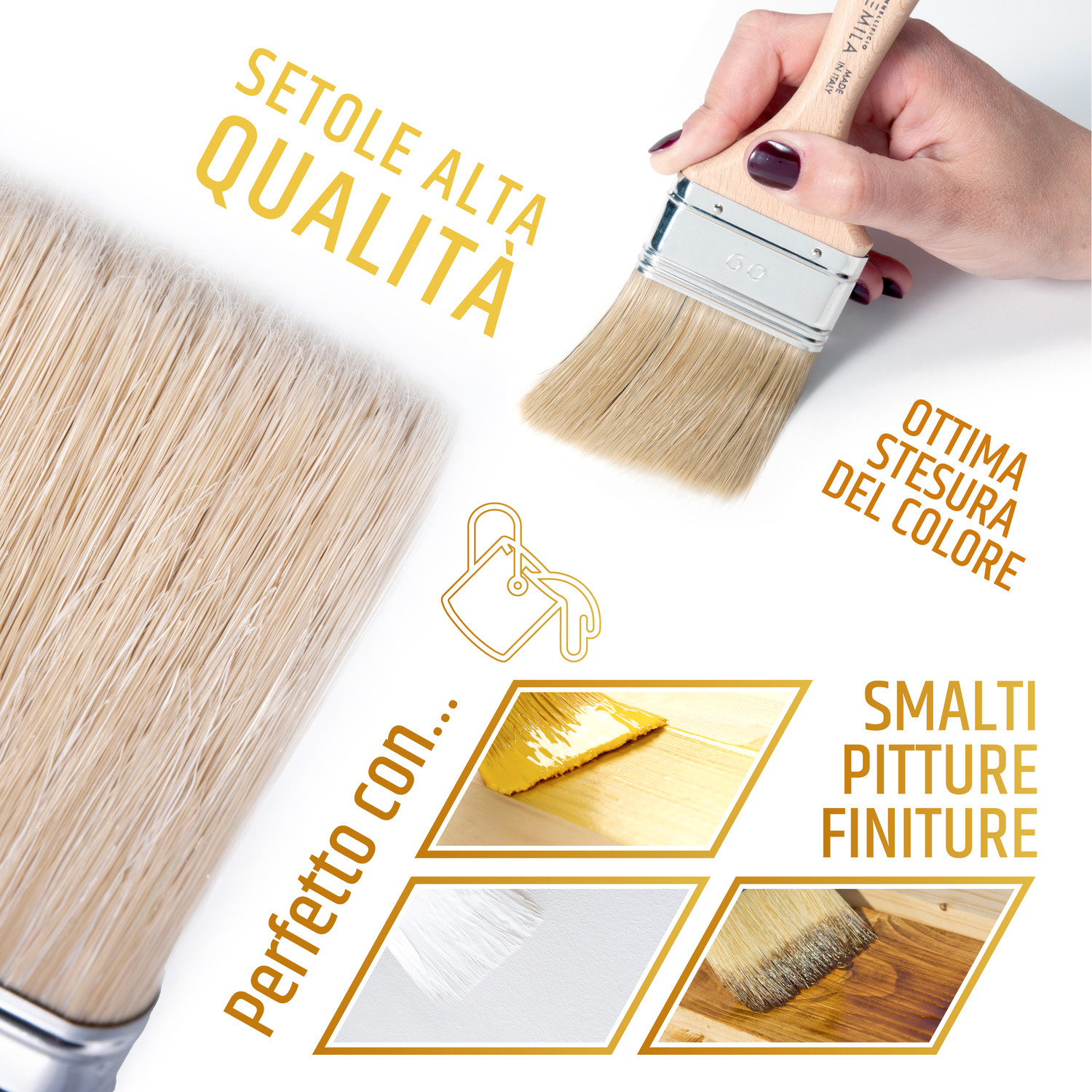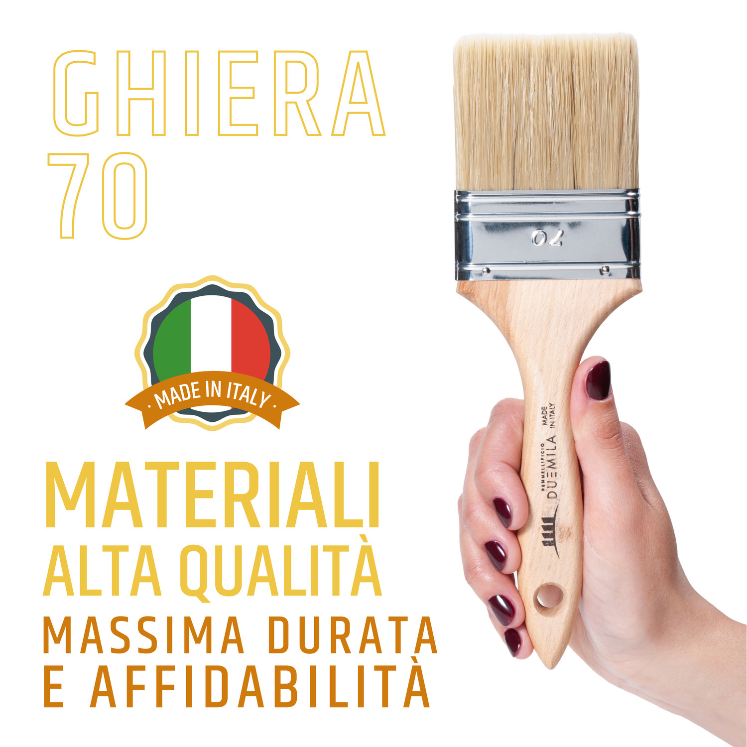 PENNELLO PITTURA CON MANICO IN LEGNO VERNICIATO PENNELLESSA UNIVERSALE PER SMALTI E VERNICI MURI LEGNO FERRO LARGHEZZA GHIERA 70 MM