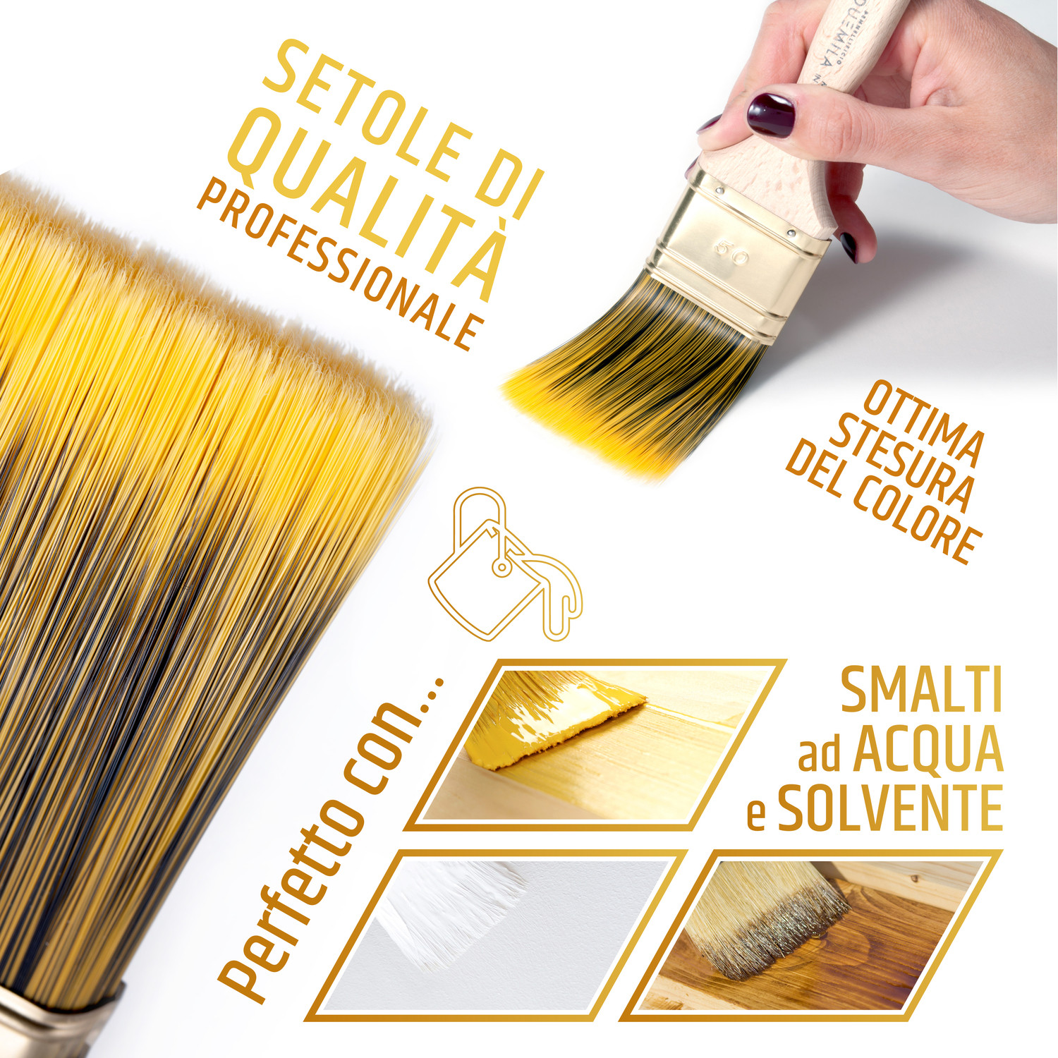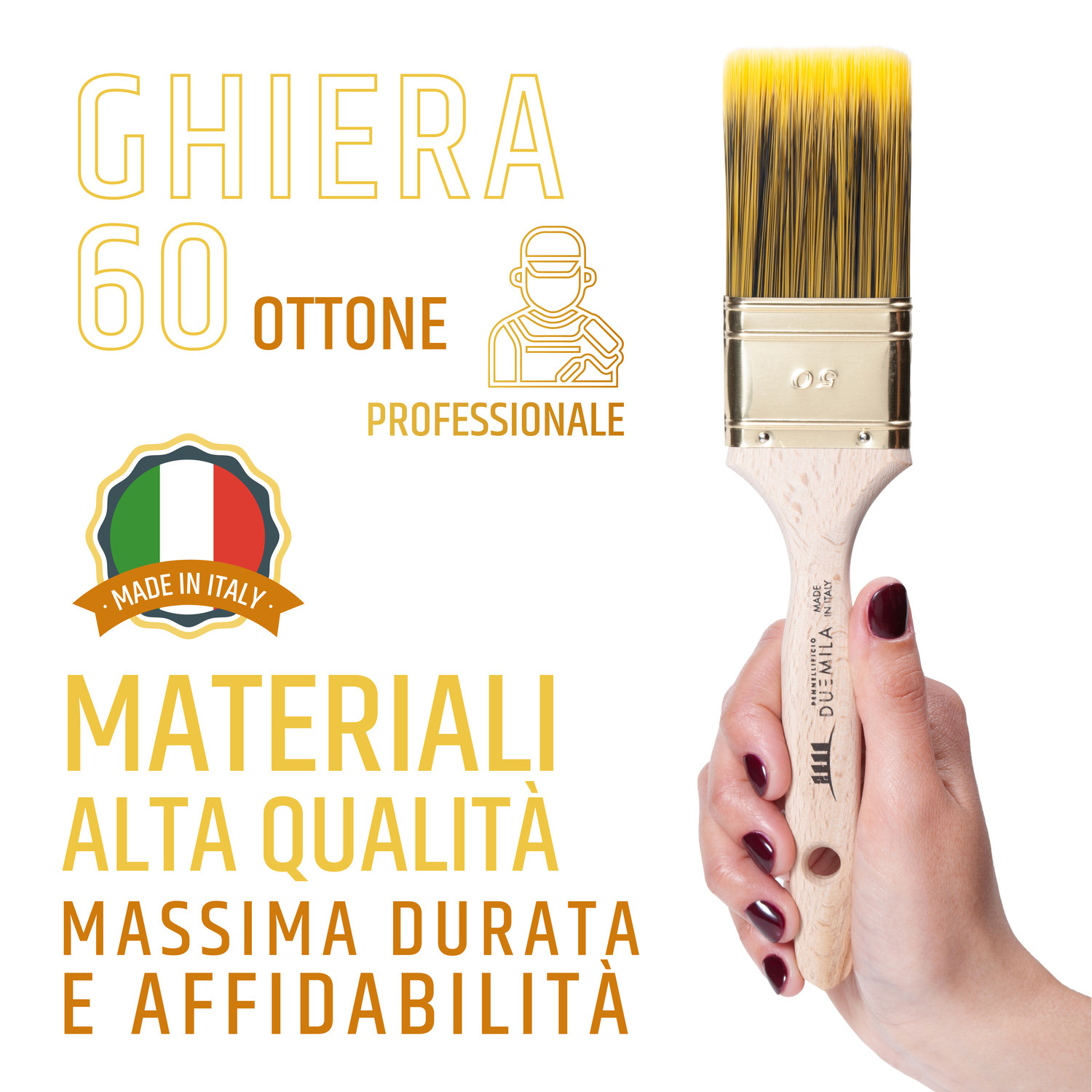 PENNELLO PITTURA PROFESSIONALE CON GHIERA IN OTTONE PENNELLESSA PER SMALTI ALL'ACQUA E SOLVENTI IDEALE PER MURI LEGNO RINGHIERE CANCELLI GHIERA 50 MM