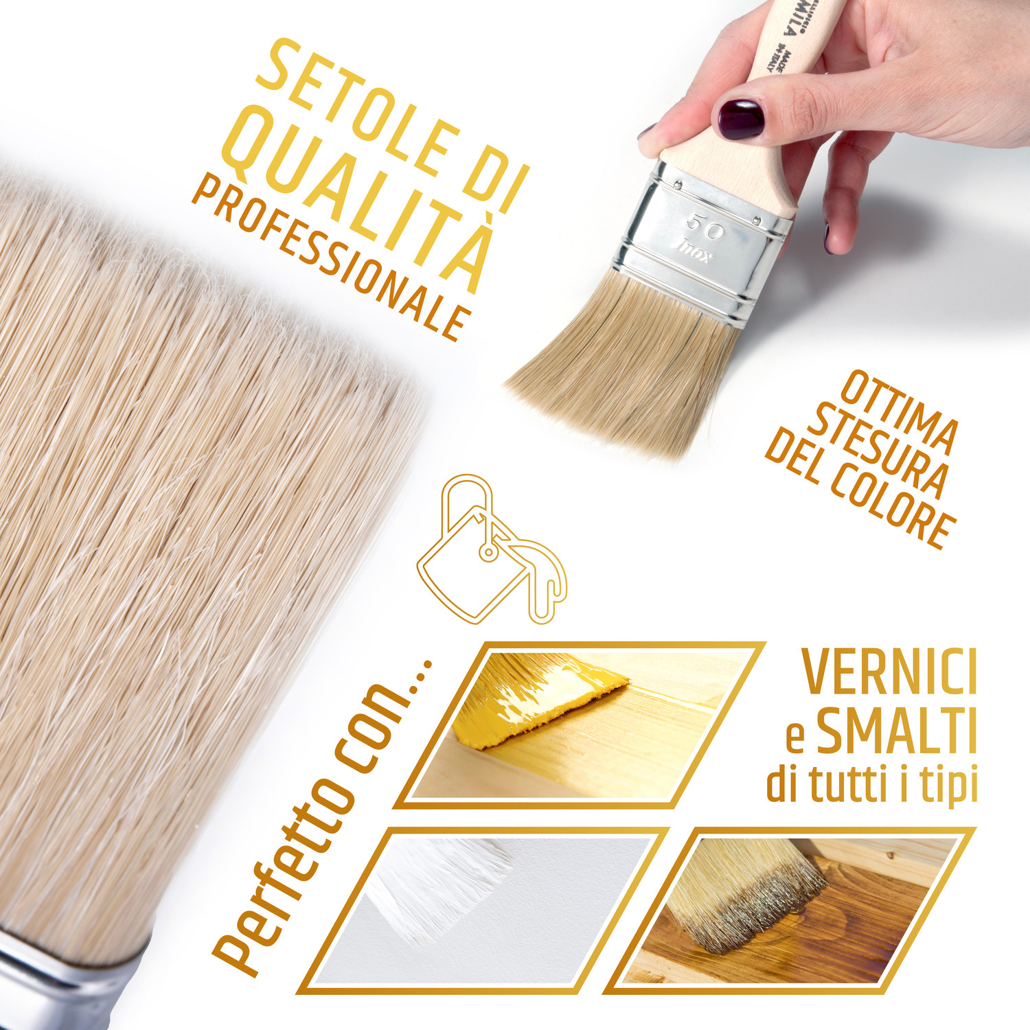 PENNELLO PITTURA PROFESSIONALE CON GHIERA INOX PENNELLESSA USO UNIVERSALE PER TUTTI I TIPI DI SMALTI E VERNICI MURI PARETI LEGNO RINGHIERE GHIERA 50 MM