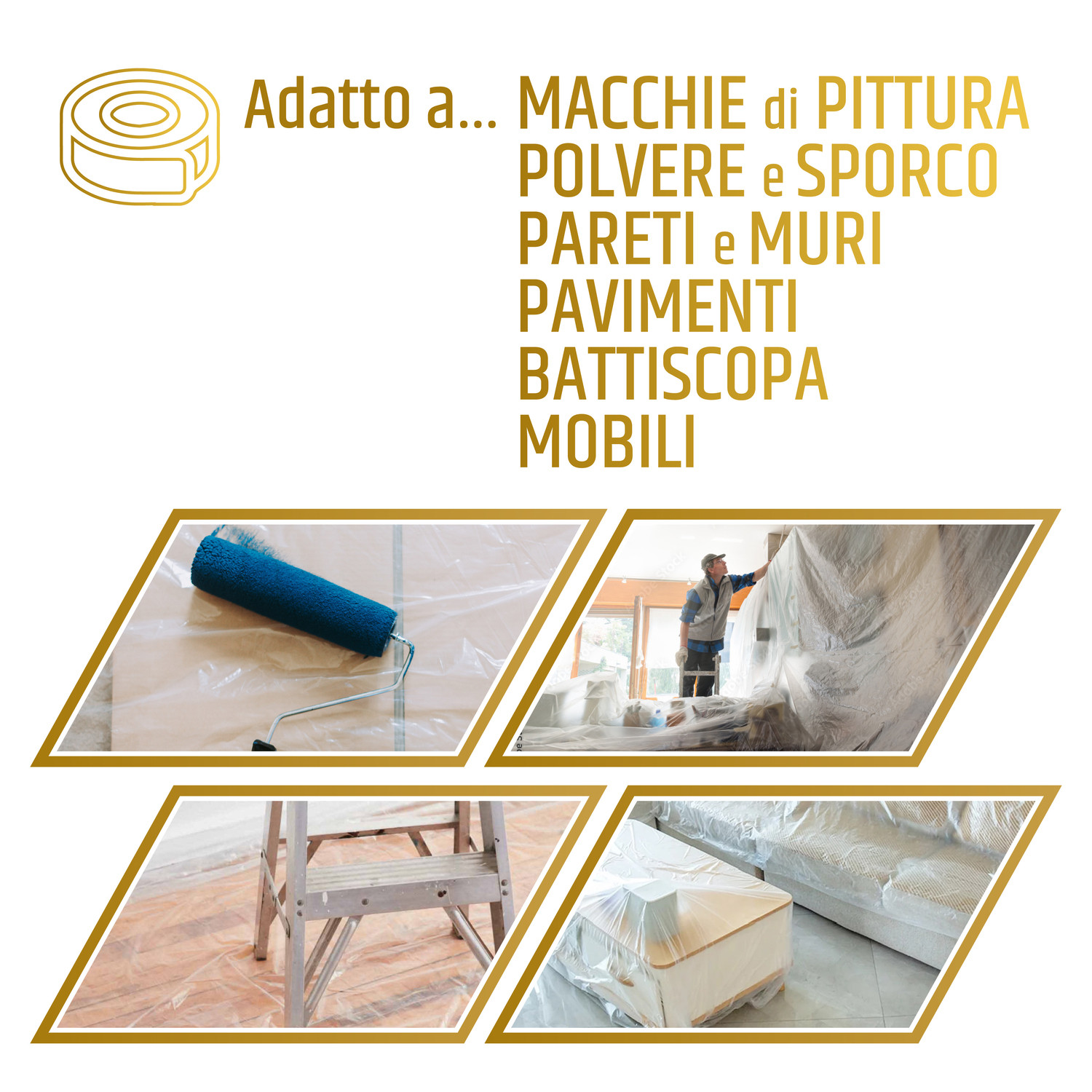 ROTOLO IN POLIETILENE CON NASTRO ADESIVO SET MASCHERATURA PROTEZIONE PARETI MURI BATTISCOPA MOBILI TELO COPRITUTTO DIMENSIONI 110 CM X 33 M