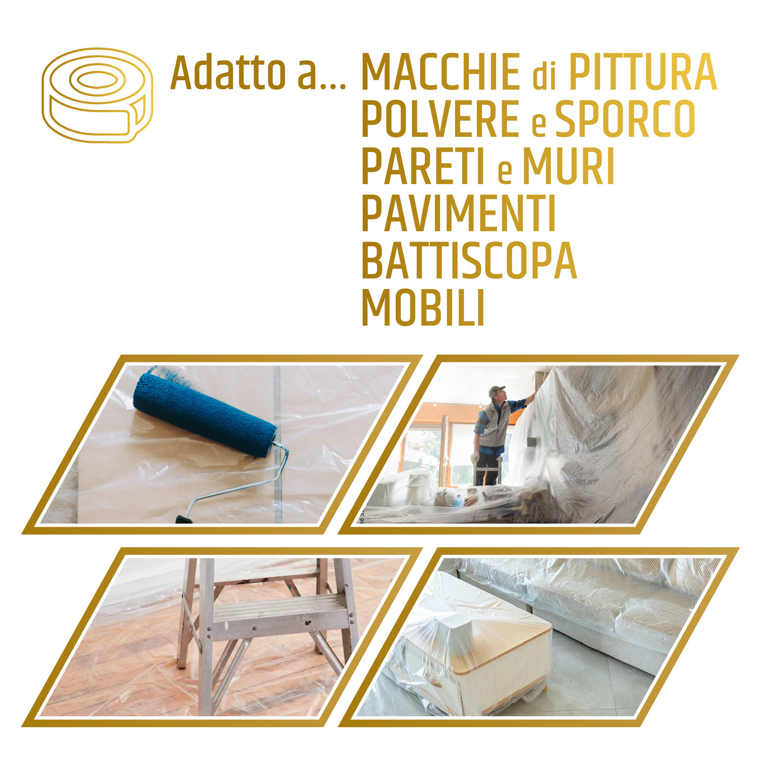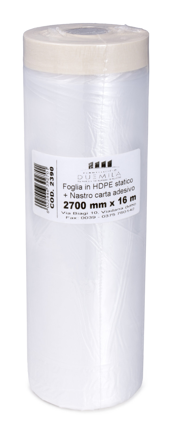 ROTOLO IN POLIETILENE CON NASTRO ADESIVO SET MASCHERATURA PROTEZIONE PARETI MURI BATTISCOPA MOBILI TELO COPRITUTTO DIMENSIONI 270 CM X 16 M