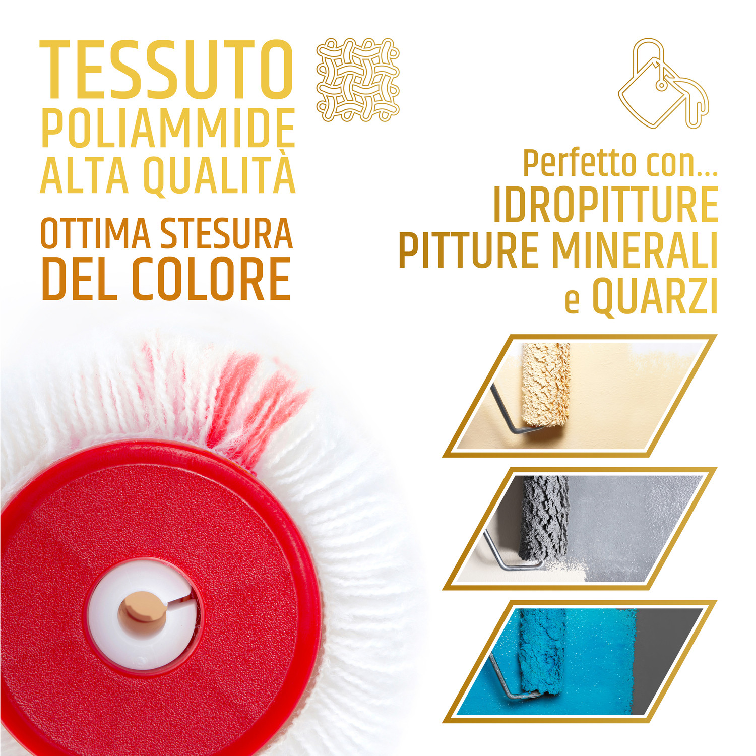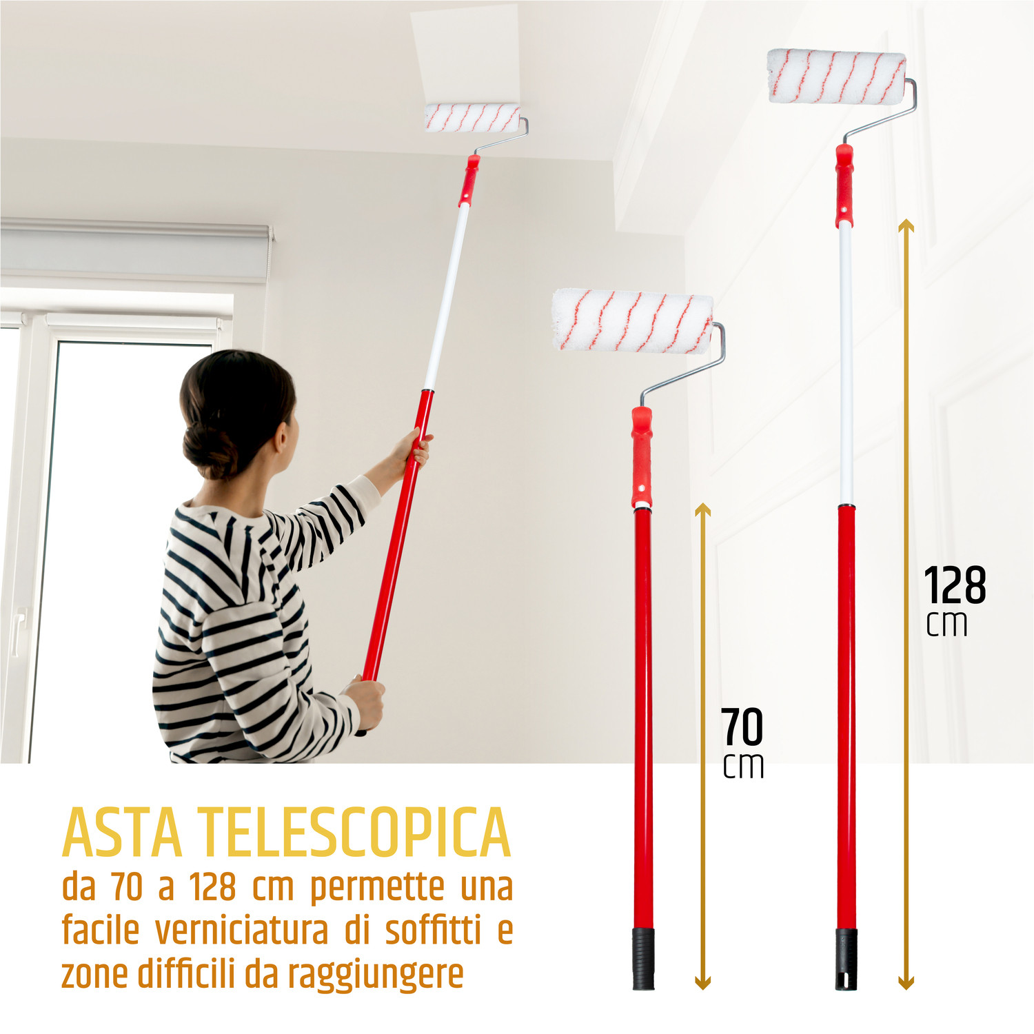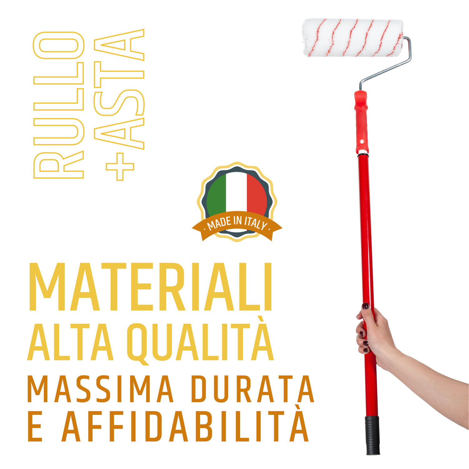 RULLO IN POLIAMMIDE CON ASTA TELESCOPICA DA 128 CM PER PARETI RUVIDE E MOLTO RUVIDE IDROPITTURA QUARZI PITTURE MINERALI L 24 CM ⌀ 5,5 CM