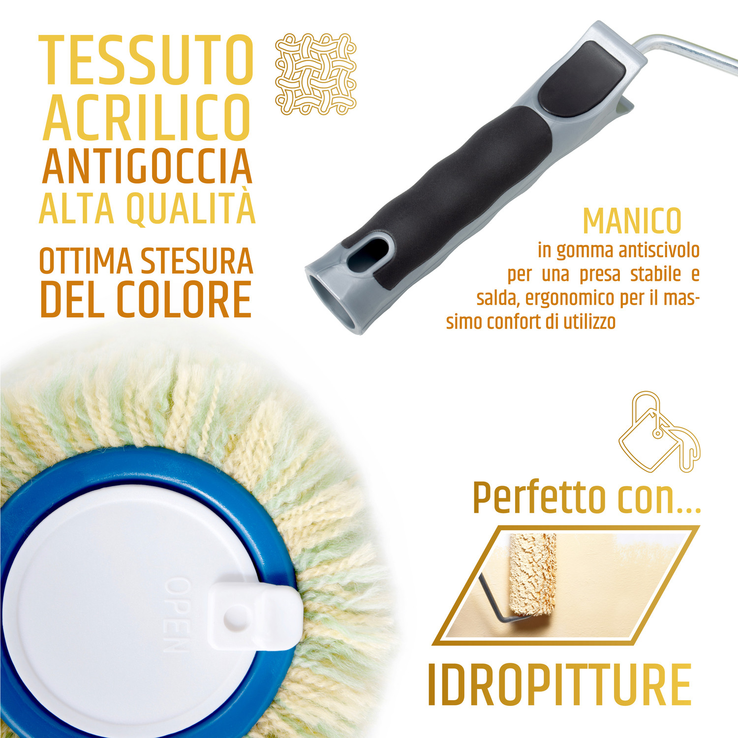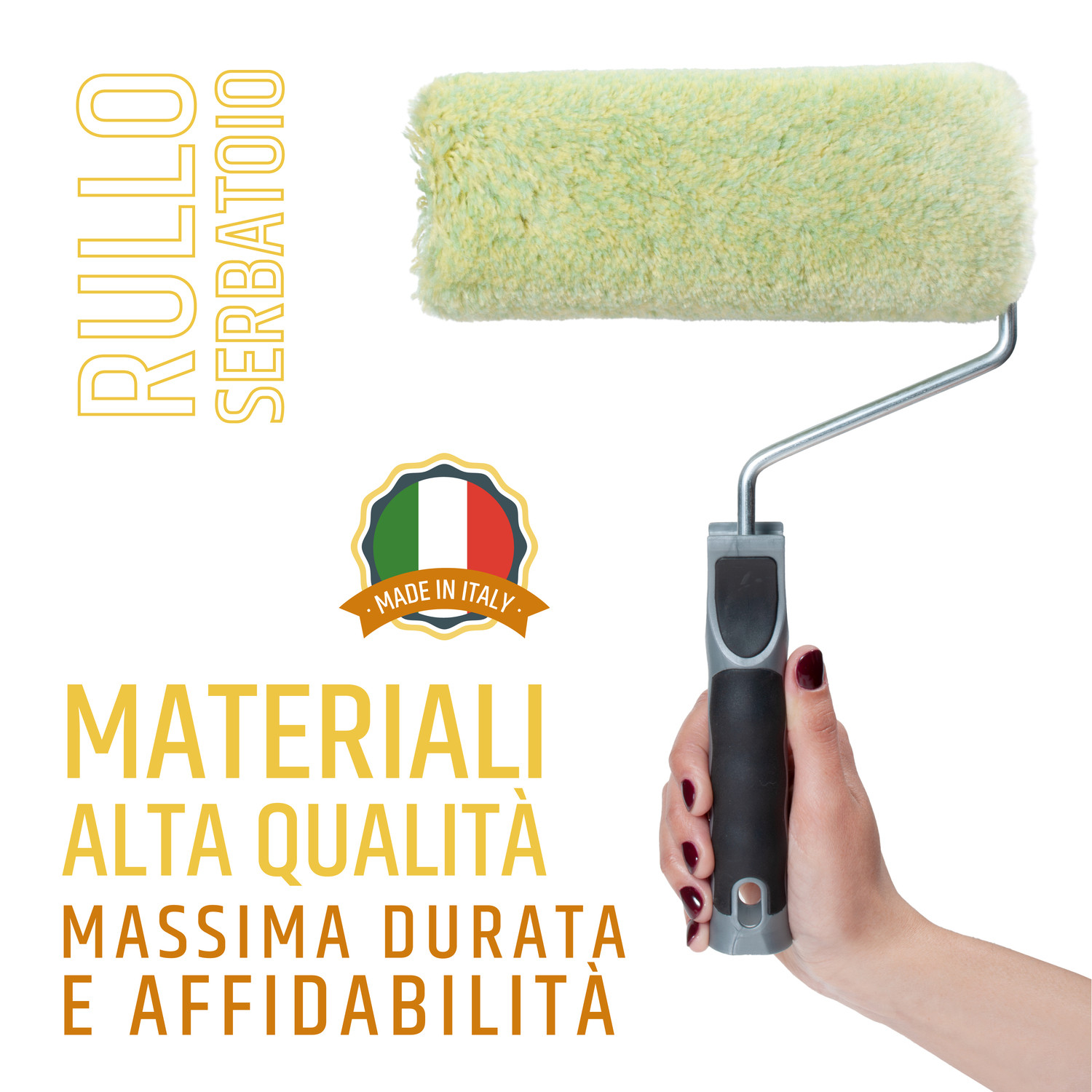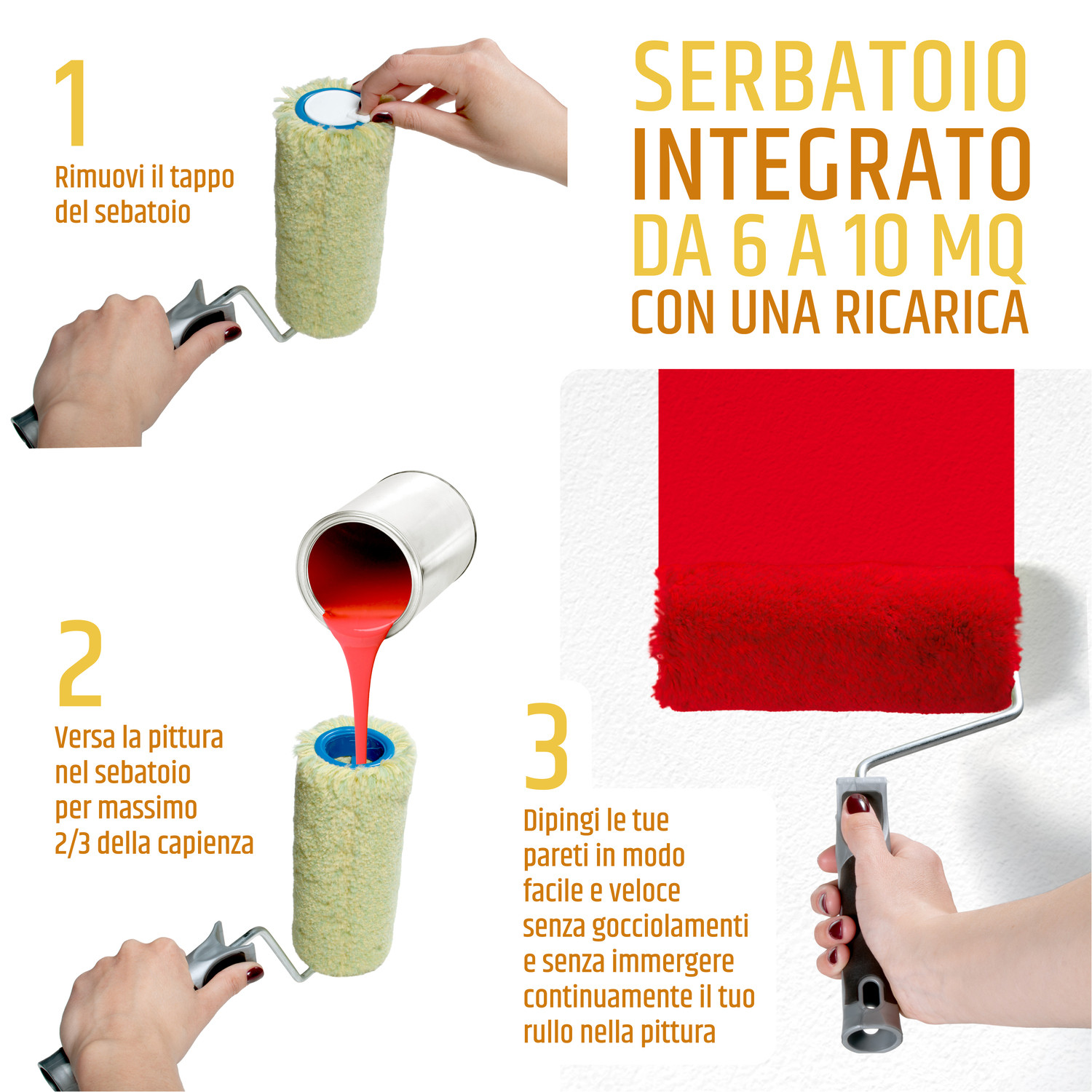 RULLO IN POLIAMMIDE CON SERBATOIO PER LA PITTURA INTEGRATO ANTIGOCCIA PER TINTEGGIARE MURI INTERNI IDROPITTURA LARGHEZZA 21 CM ⌀ 5,5 CM