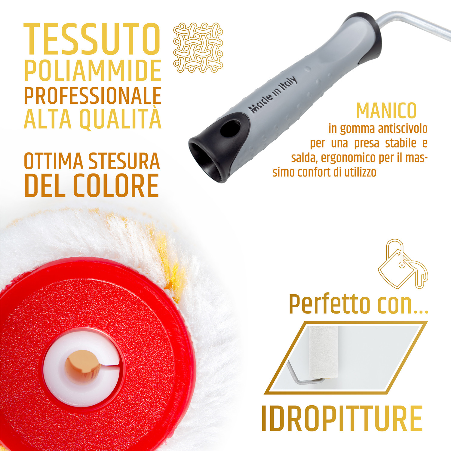 RULLO PROFESSIONALE PER MURI LISCI IN POLIAMMIDE CON MANICO ANTISCIVOLO IN GOMMA PER INTERNI SUPERFICI LISCE E POCO RUVIDE CARTONGESSO IDROPITTURE LARGHEZZA 20 CM