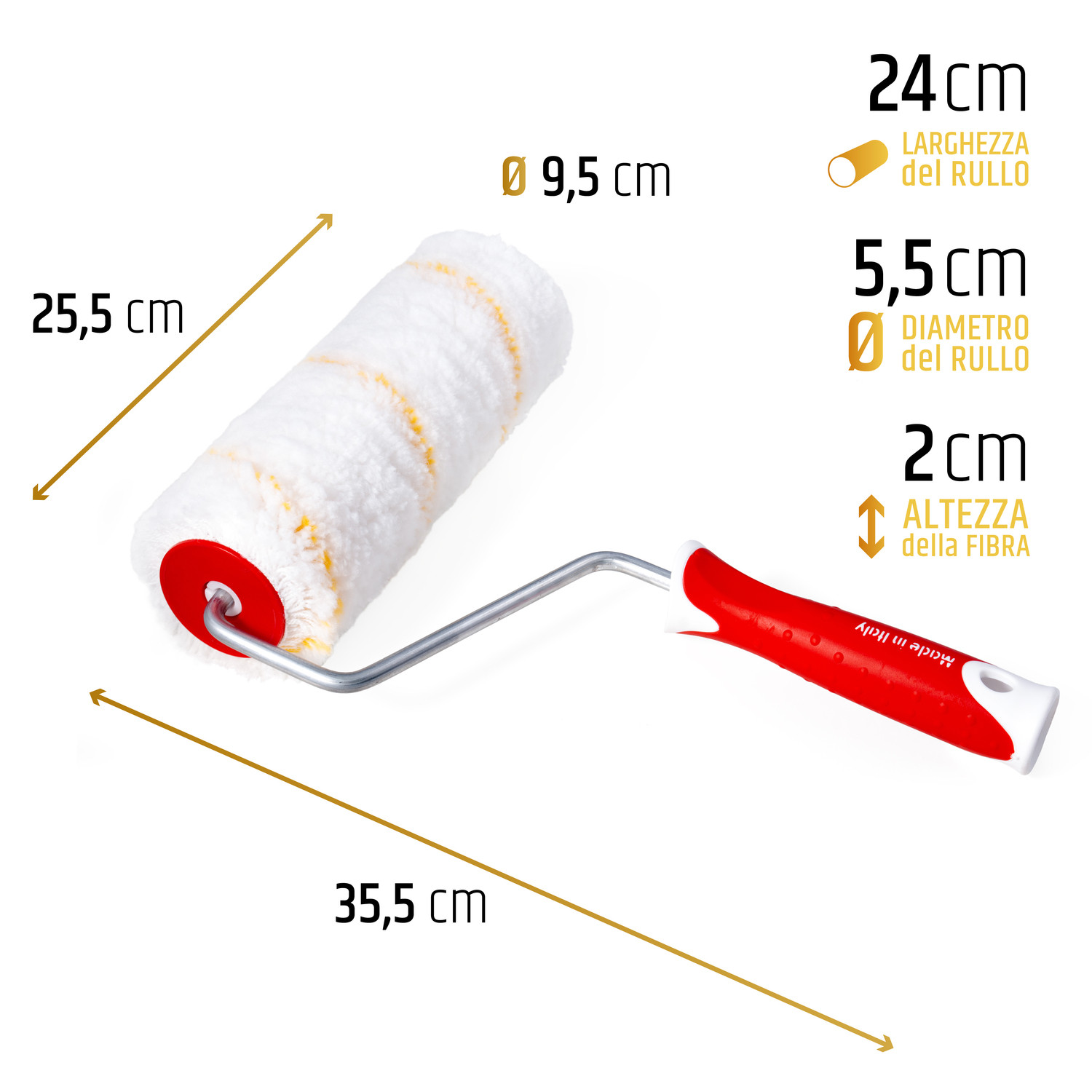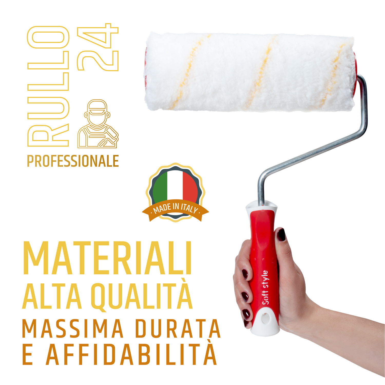 RULLO PROFESSIONALE PER MURI RUVIDI IN POLIAMMIDE CON MANICO ANTISCIVOLO IN GOMMA PER ESTERNI SUPERFICI RUVIDE IDROPITTURE E PITTURE MINERALI LARGHEZZA 24 CM